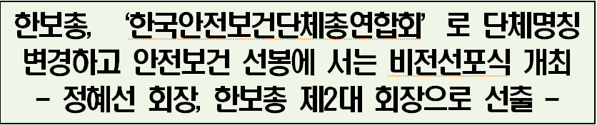 [보도자료] 한보총, ‘한국안전보건단체총연합회’로 단체명칭 변경하고 안전보건 선봉에 서는 비전선포식 개최